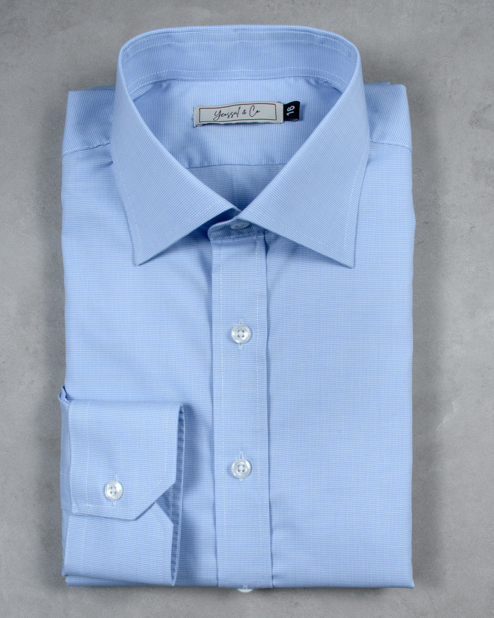 Discover this classic shirt featuring a semi-spread collar and beveled cuffs for a sophisticated look. Crafted from 100% cotton fabric, it provides both breathability and comfort.